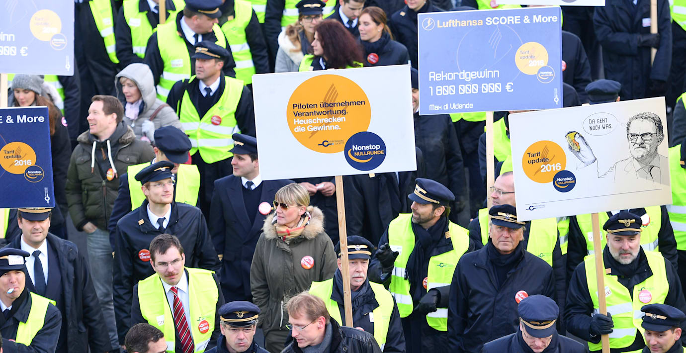 Sedan 2014 har piloterna strejkat 15 gånger. Bakgrunden är att piloterna kräver en lönehöjning på 3,7 procent under en femårsperiod räknat från 2012. Lufthansa gav motbudet 4,4 procent under 2016 och 2017, ett bud man nu har lagt ned.