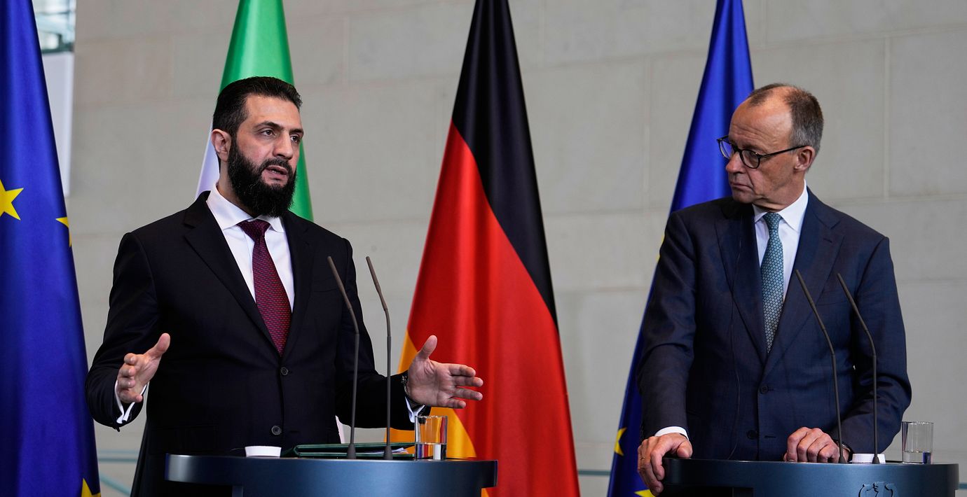 Över ett år efter krigsslutet har säkerhetsläget i Syrien ”förändrats i grunden” och därför ska flyktingarnas skyddsbehov i Tyskland ses över, säger Merz vid en pressträff med al-Sharaa.
