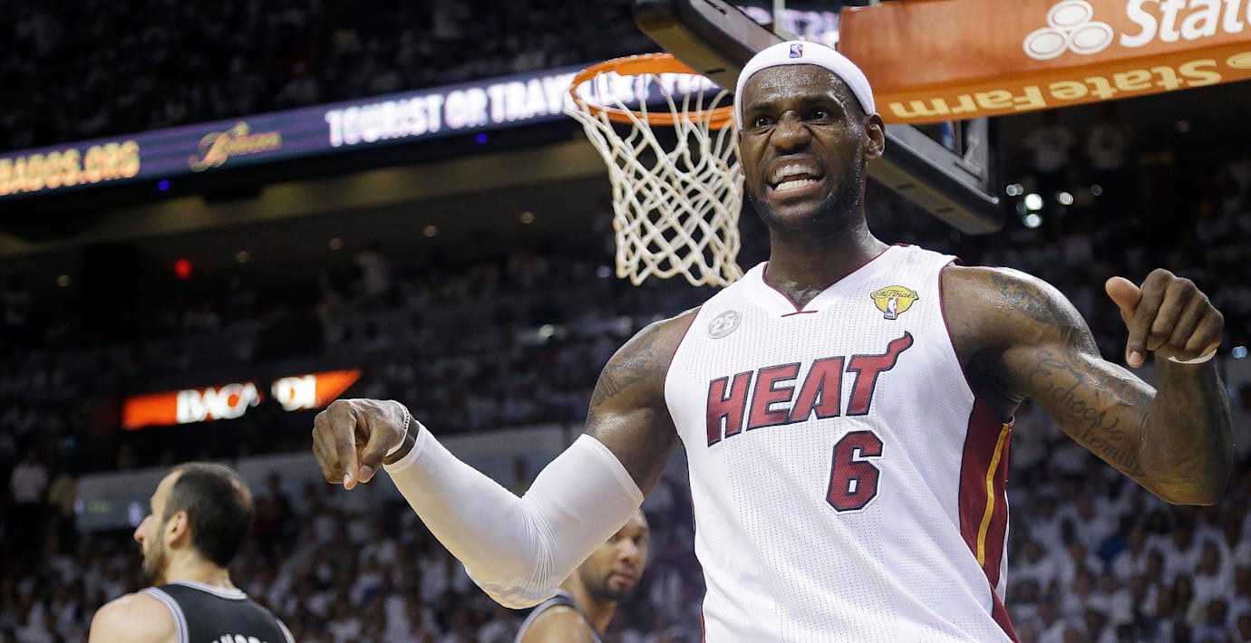 Miami Heat vann den sjunde och avgörande finalmatchen mot San Antonio Spurs i NBA-basketen med 95–88. Miamistjärnan LeBron James satte 37 poäng.