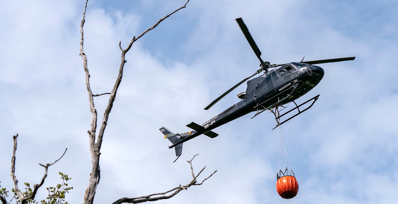 – Vi arbetar med vattenbeskjutning med flygplan och helikoptrar, säger han.