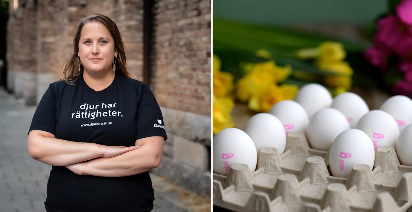 Svenskarna äter 50 miljoner ägg under påsken, och för att det ska vara möjligt föds hönor upp till ett liv i fångenskap i trånga djurfabriker, skriver Camilla Bergvall, riksordförande Djurens rätt, i en debattartikel i Expressen. Samtidigt dödas flera miljoner tuppkycklingar eftersom de fötts med fel kön och inte kan lägga ägg, skriver hon.