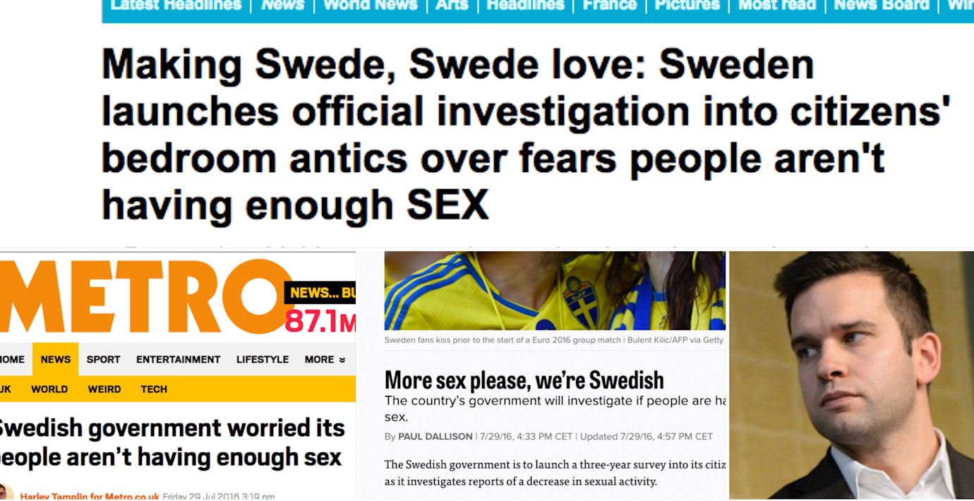 Brittiska Metro: ”Den svenska regeringen oroas över att befolkningen inte har tillräckligt mycket sex”.