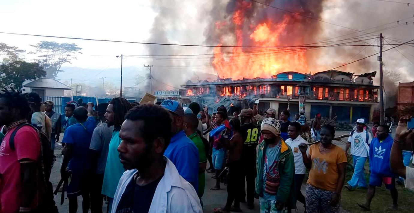 Flera byggnader har satts i brand och enligt en talesperson för den papuanska militären brändes de flesta dödsoffer ihjäl. Dödssiffran befaras också stiga eftersom många människor fortfarande är instängda i brinnande byggnader.