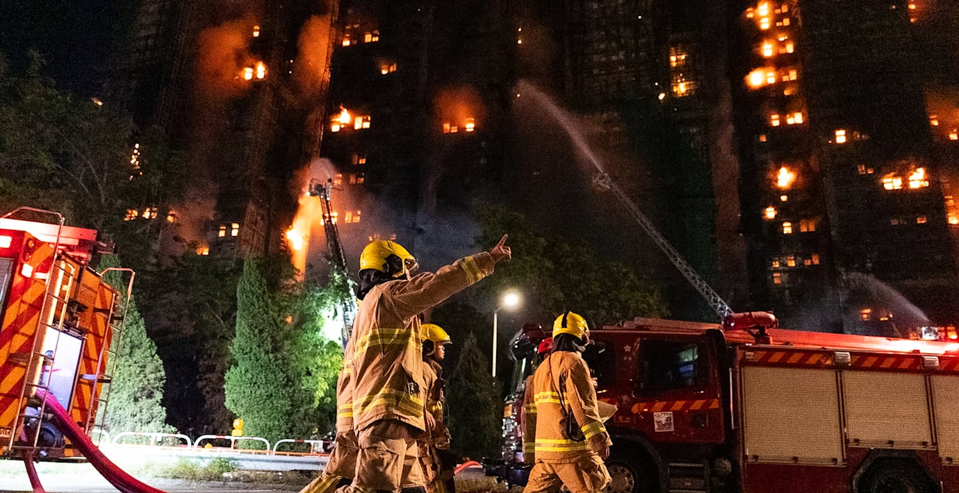 Vid 17.00 svensk tid var byggnaderna fortfarande i lågor men brandmännen är på väg att få kontroll på branden, uppger Hongkongs chefsminister John Lee.