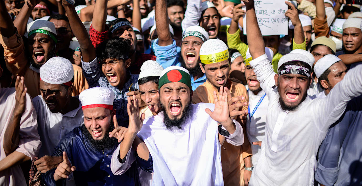 Minst 50 000 protesterade mot Macron i Bangladesh
