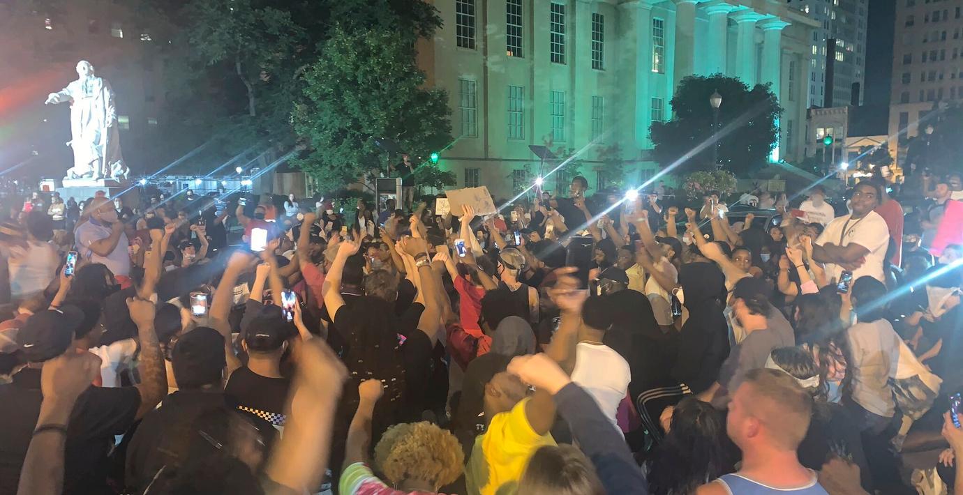 Demonstrationerna handlar om Breonna Taylor, som sköts ihjäl i sitt hem av polisen i mars. Protesterna mot polisvåldet har eskalerat över hela USA efter att en svart man, George Floyd, dog under ett våldsamt polisingripande i Minnesota.
