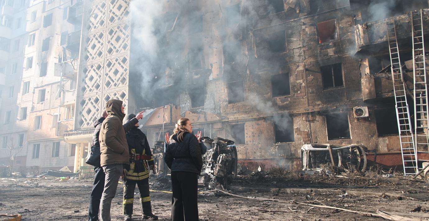”Det är dessvärre omfattande förstörelse i byggnaderna och människor kan ligga under rasmassorna”, skriver Ukrainas president Volodymyr Zelenskyj i sociala medier.