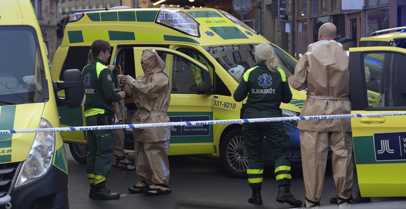 Minst tio personer sanerades efter att de kommit i kontakt med ett okänt ämne på Östermalm i centrala Stockholm.