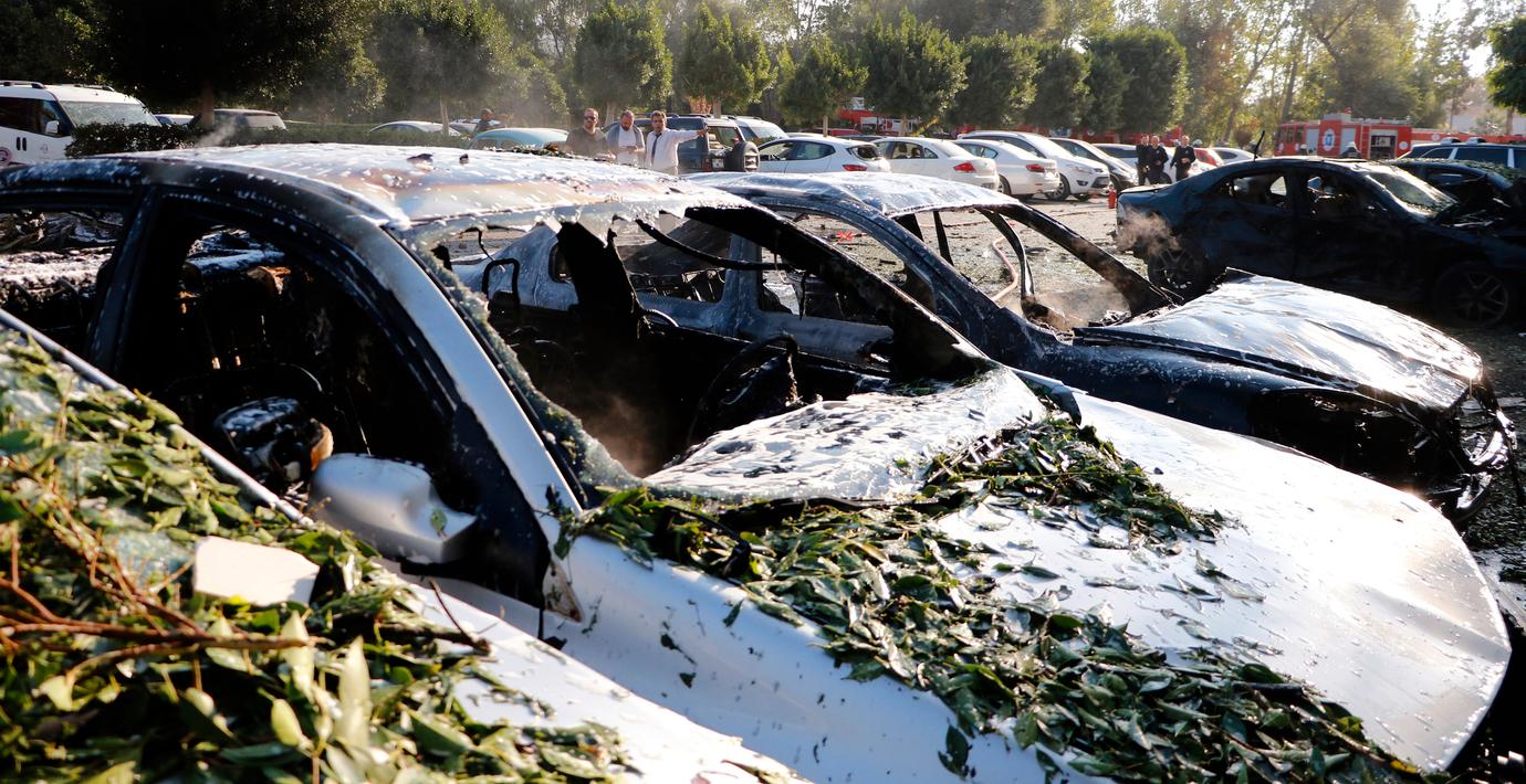 Tv-bilder visar en utbränd bil omgiven av glassplitter. Minst fyra bilar i närheten skadades också, enligt den turkiska nyhetsbyrån Dogan.