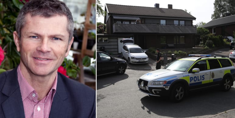 Göteborgs-Posten skriver att Hartmann upptäckte mannen i sin trädgård när han hällde vätska ur en dunk.