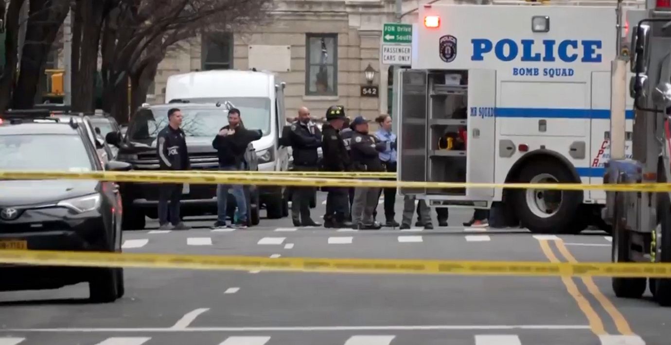 New York-polisen utreder terrorbrott efter att sprängladdningar kastats vid en demonstration i staden i helgen, rapporterar flera medier.