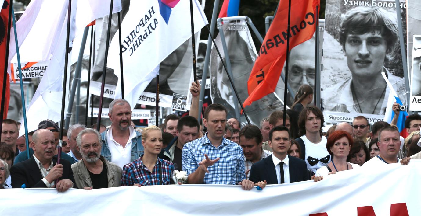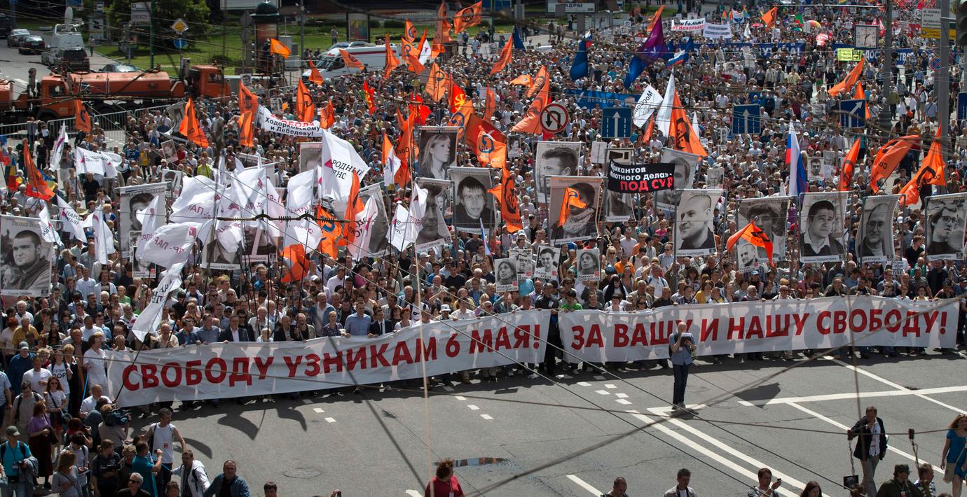 Tusentals ryssar har i dag protesterat mot president Vladimir Putins allt mer auktoritära styre. De kräver också att oppositionella aktivister som fängslats ska friges.