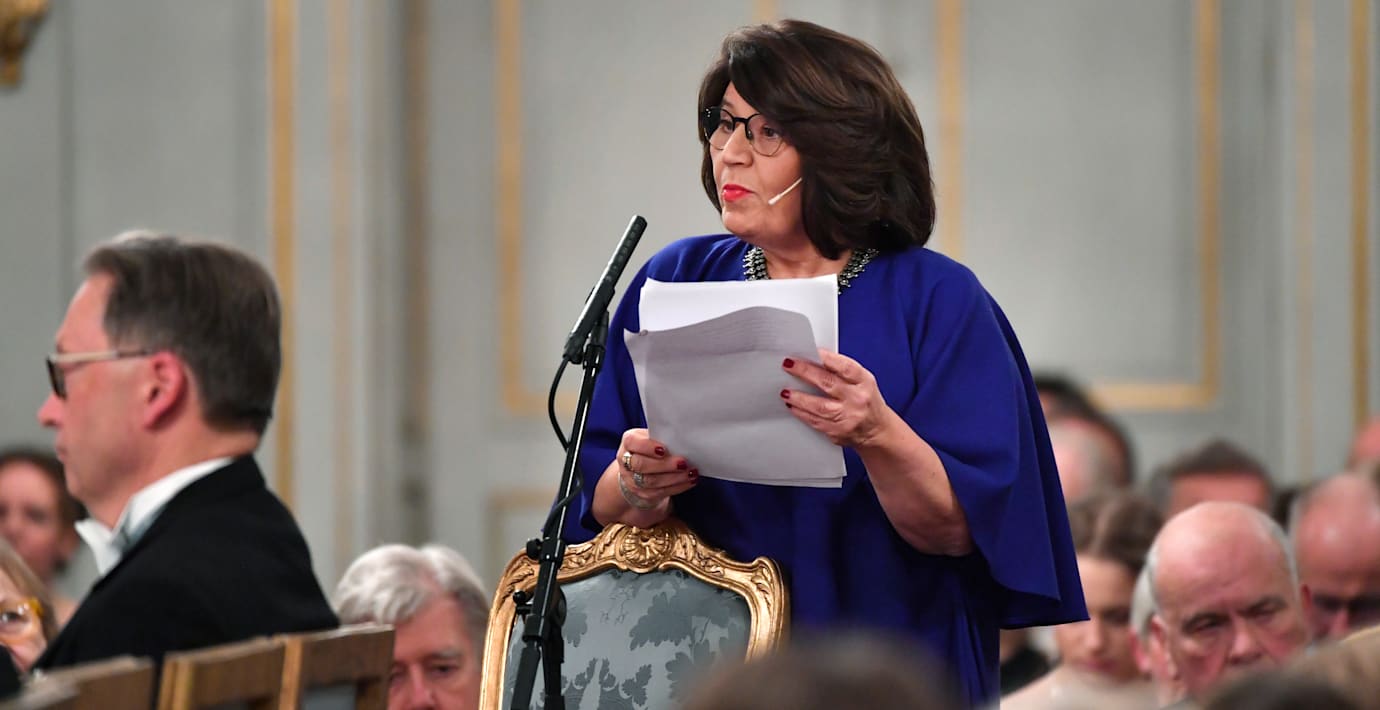 På frågan vem 70-åringen skulle vilja ge Nobelpriset i litteratur svarar hon den syriske poeten Ali Ahmad Said Asbar.