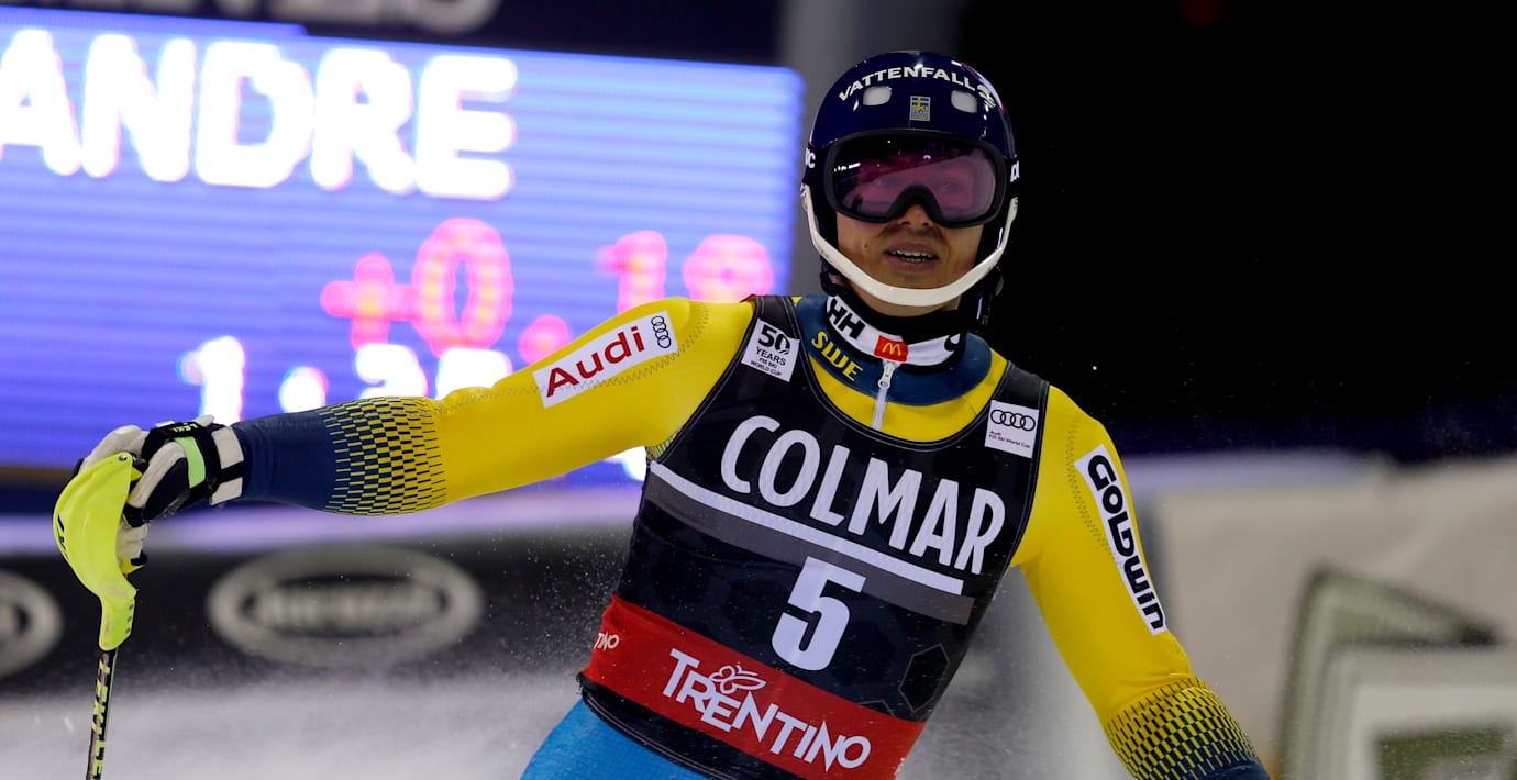 Norges Henrik Kristoffersen vann, 33 hundradelar framför tvåan i slalomcupen Marcel Hirscher. Mattias Hargin blev 21:a, medan Jens Byggmark och Anton Lahdenperä körde ur.