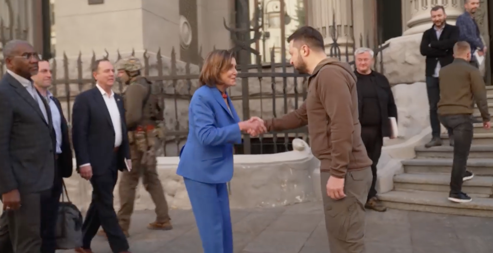 USA:s representanthus talman Nancy Pelosi har besökt Ukrainas president Volodymyr Zelenskyj i Kyiv, visar ett videoklipp som den sistnämnda lagt upp på Facebook.