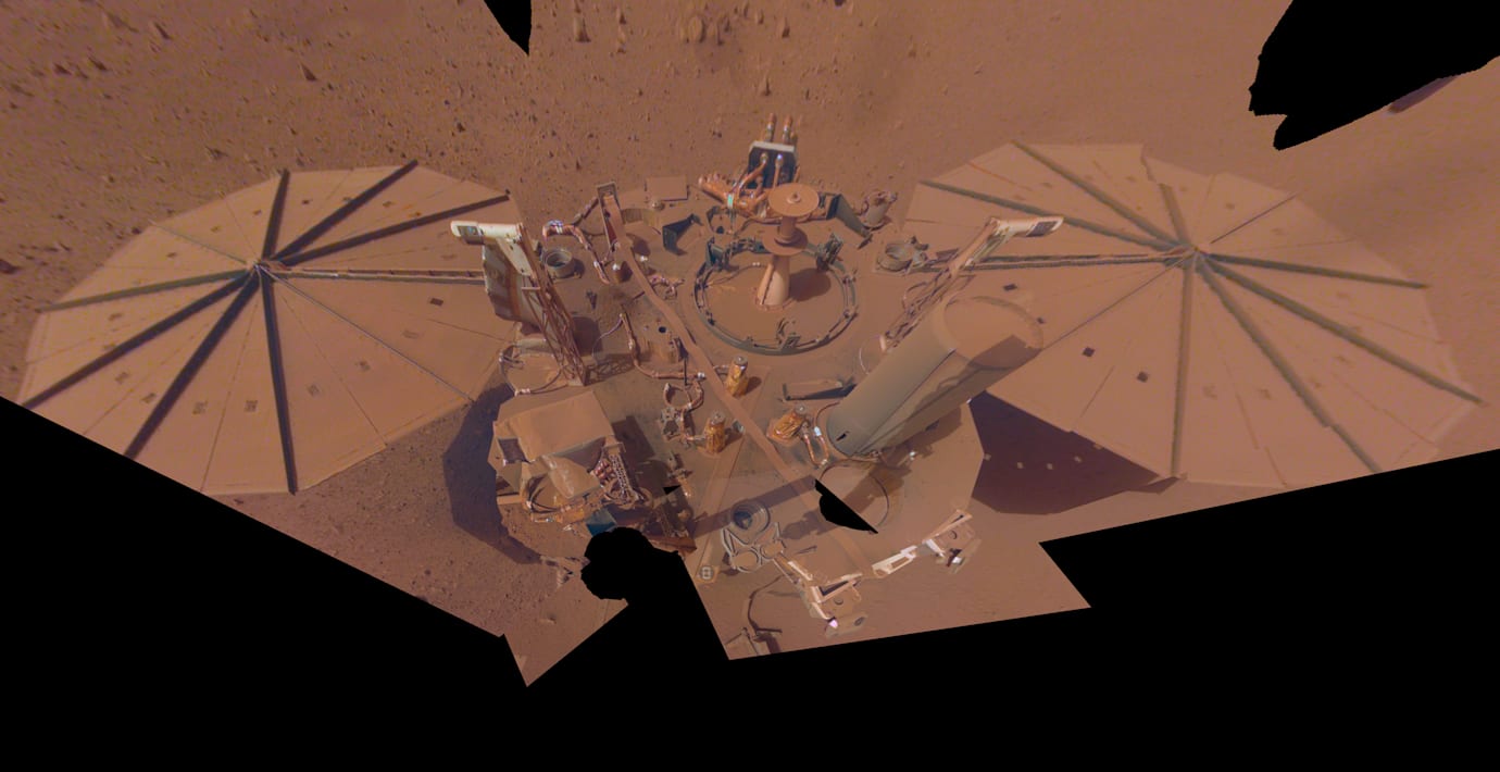 ”Min ström är väldigt låg, så det här kan vara den sista bilden jag kan skicka. Men oroa er inte för mig: jag har varit både produktiv och fridfull här”, skriver Nasa i vad som kan vara en sista hälsning från Insight.