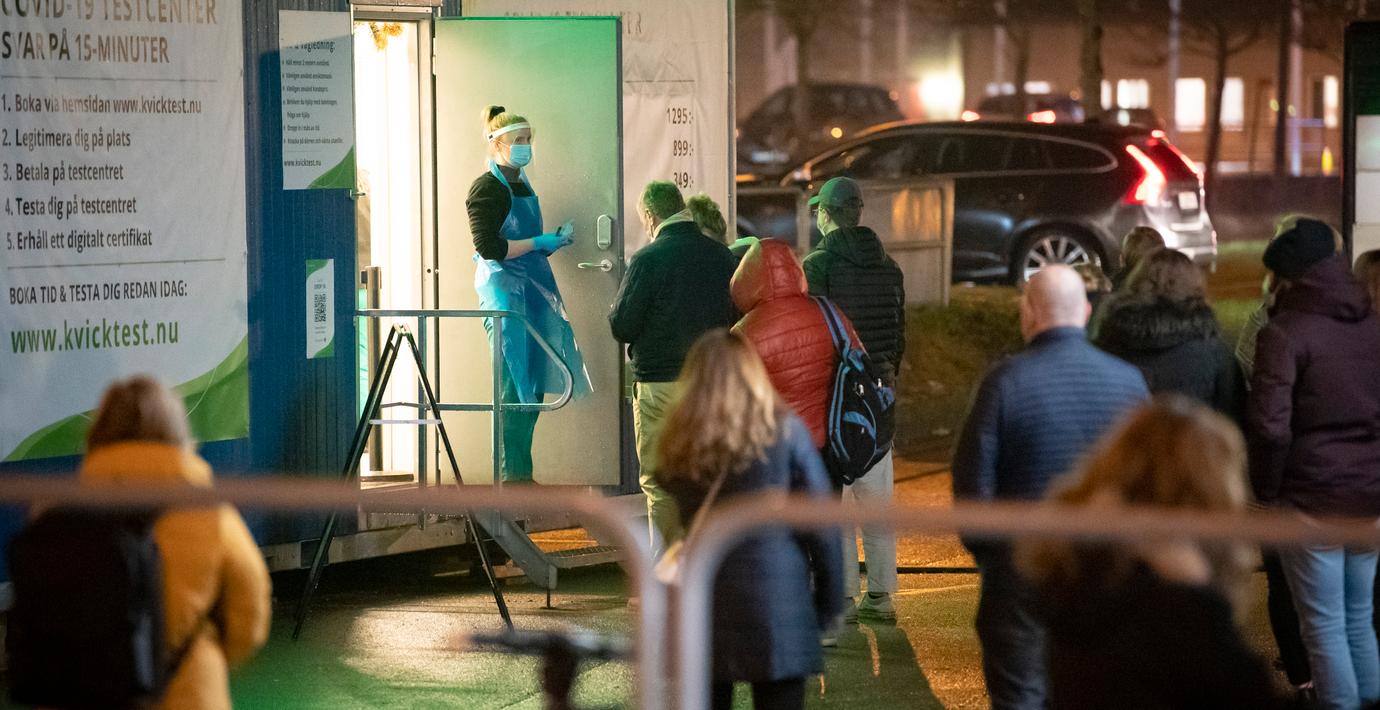 Kö för covidtest i Lund den 22 december. (Johan Nilsson/TT)