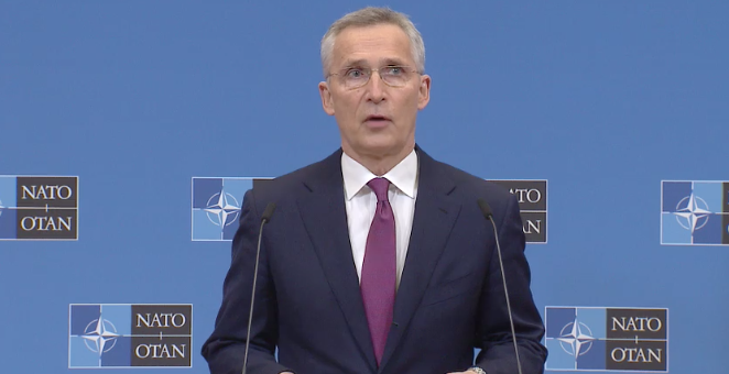 Under pressträffen beskriver Stoltenberg Rysslands invasion som den värsta militära aggressionen i Europa på årtionden.