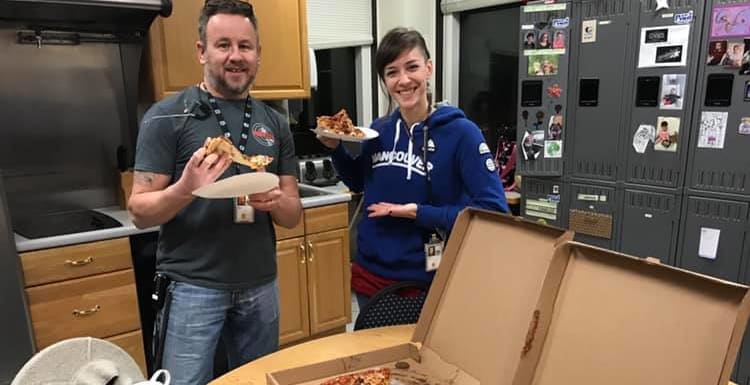 David Heady och Julie Lytle är flygledare i Portland, Maine, och de är tacksamma över pizzorna.