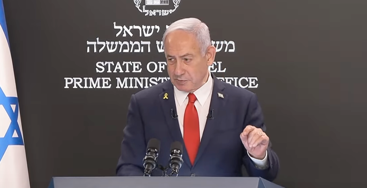 Israels premiärminister Benjamin Netanyahu säger på en presskonferens att Hamas har pumpat ut falska nyheter som västerländska medier har publicerat.