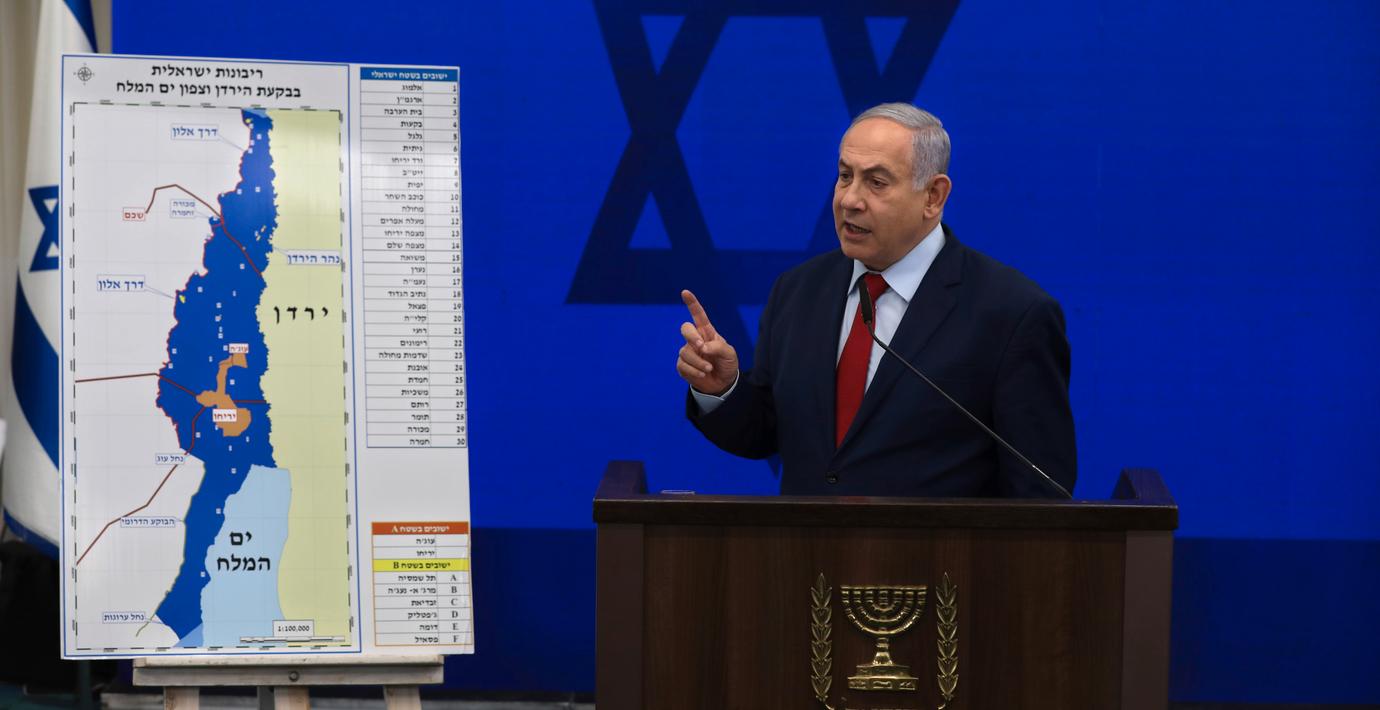 – I dag tillkännager jag min avsikt att, efter att den nya regeringen tagit plats, införa israelisk suveränitet i Jordandalen och över Döda havets norra del, sa Netanyahu.