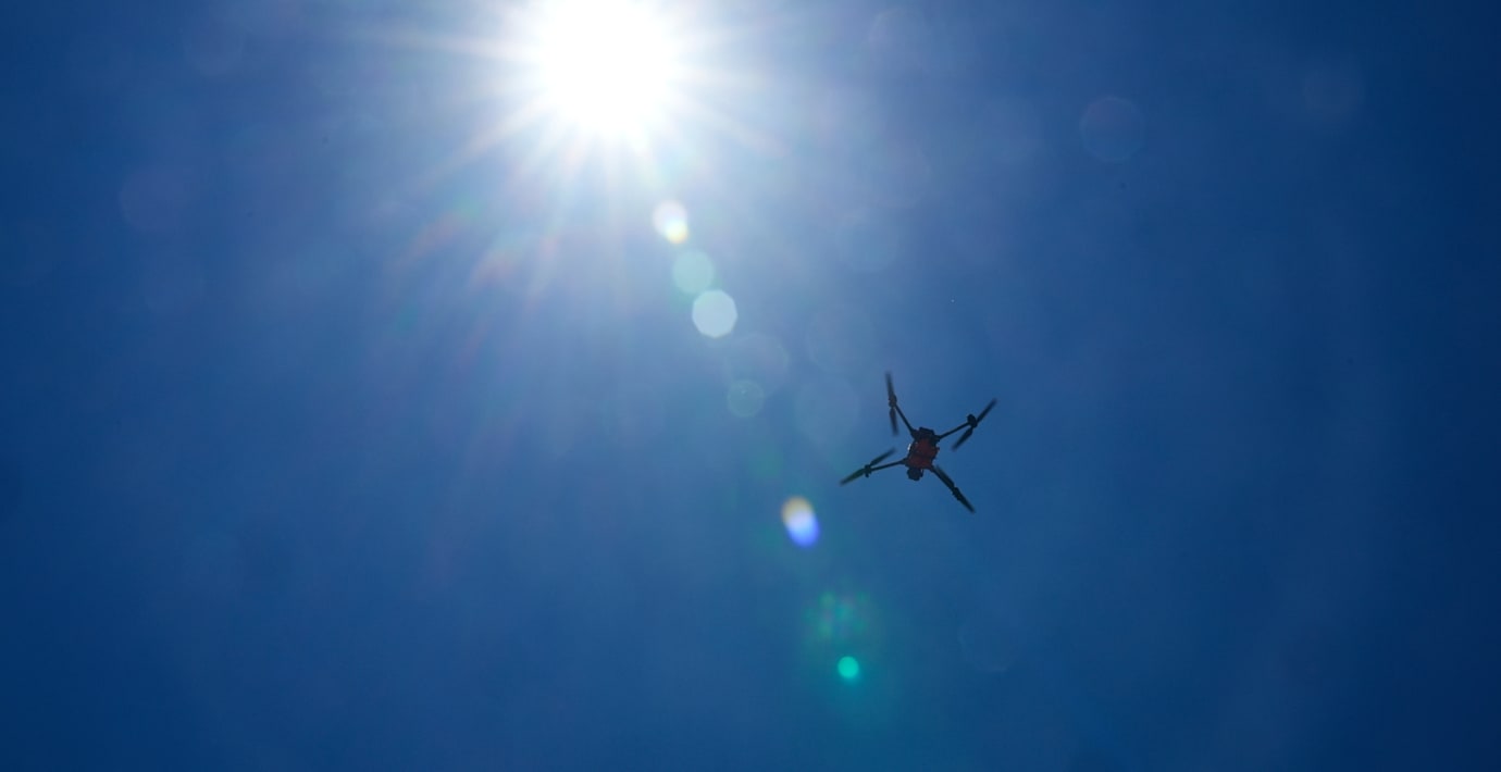 Apparaten – som är utrustad med en högtalare – flyger över staden och varnar folk som bor i källarvåningar för överhängande kraftigt regn.