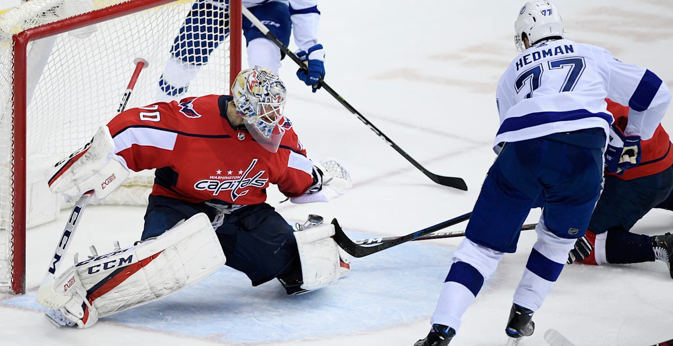 Tampa Bays Victor Hedman, som så sent som i går utsågs till NHL:s bästa back av spelarna, avgjorde i förlängning när laget mötte mästarna Washington. Washingtons Lars Eller gjorde 1–0 sju minuter in i matchen efter en passning från Carl Hagelin, ett resultat som stod sig hela första perioden.