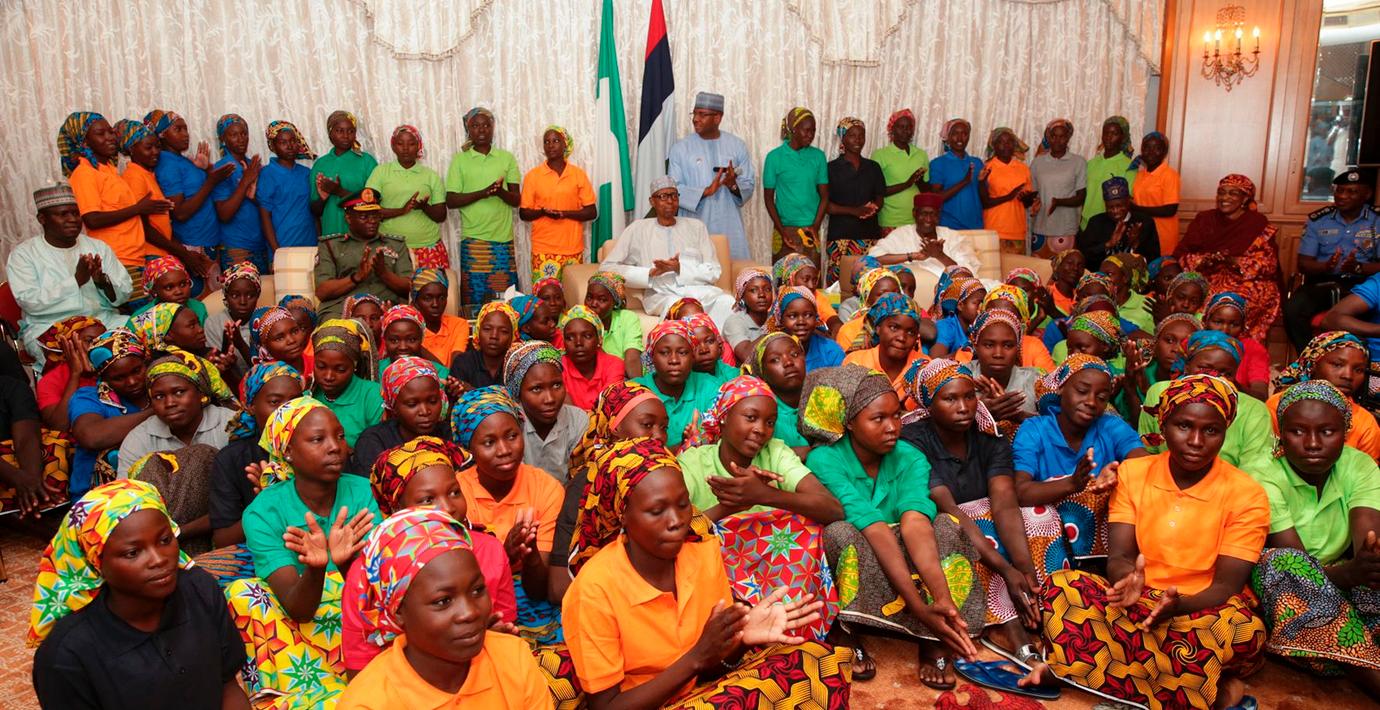 Nigerias president träffar de frisläppta flickorna