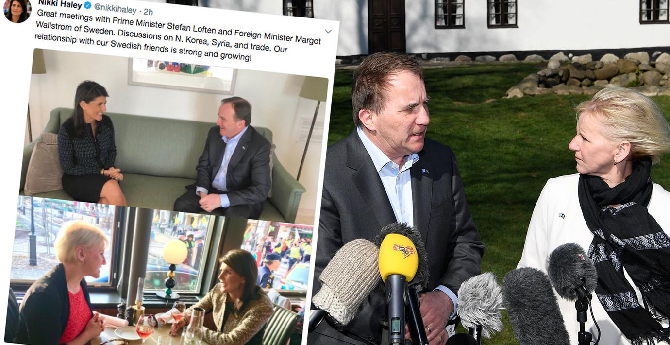 ”Bra möte med Sveriges statsminister Stefan Loften och utrikesminister Margot Wallström. Diskussioner om Nordkorea, Syrien och handel. Vår relation med våra svenska vänner är stark och växer!” twittrar USA:s FN-ambassadör efter mötet.