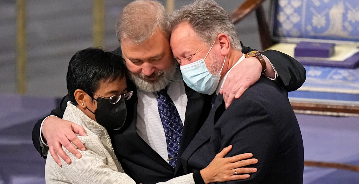 En tyst minut för alla journalister som har dött när de har utfört sitt jobb. Det utlyste den ryske journalisten Dmitrij Muratov när han tillsammans med sin filippinska kollega Maria Ressa mottog Nobels fredspris i Oslo på fredagen, skriver AFP.