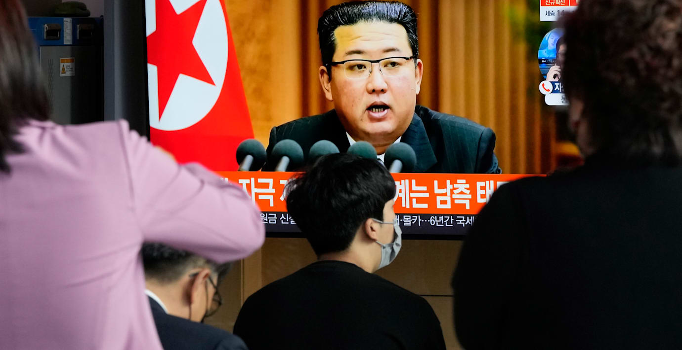 Tv-apparat i Seoul i Sydkorea visar Kim Jong-Un. (Ahn Young-joon / TT NYHETSBYRÅN)