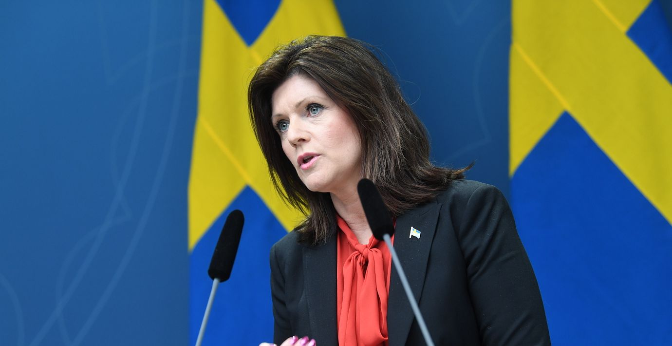 Arbetsmarknadsminister Eva Nordmark ser allvarligt på coronavirusets påverkan på arbetsmarknaden, säger hon på en presskonferens.