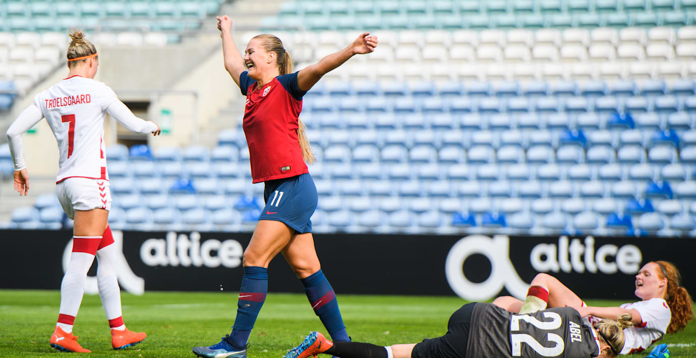 I premiären av Algarve Cup var det PSG-anfallaren Nadia Nadim som öppnade målskyttet för Danmark i den 17:e minuten. Norge jobbade sin in i matchen och med drygt 12 minuter kvar satte Therese Sessy Åsland kvitteringen på frispark. På övertid blev sedan Utland matchhjälte för det VM-klara laget.