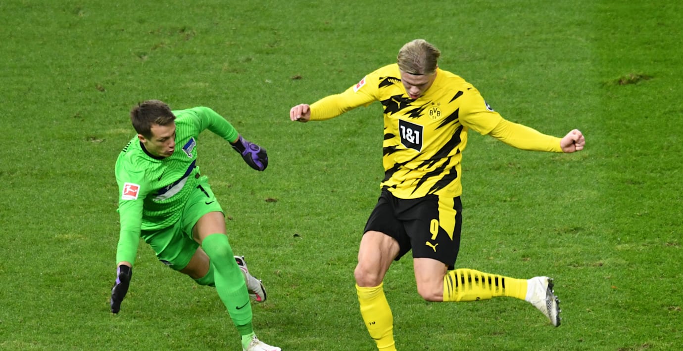 20-åringen gjorde fyra mål när hans Borussia Dortmund slog Hertha Berlin på bortaplan med 5–2. Alla norrmannens mål kom i den andra halvleken. Vid kvitteringen till 1–1 höll han sig påpassligt framme i offensivt straffområde, 2–1 kom vid ett friläge och hattricket fullbordades efter att han rundat Hertha Berlin-målvakten.