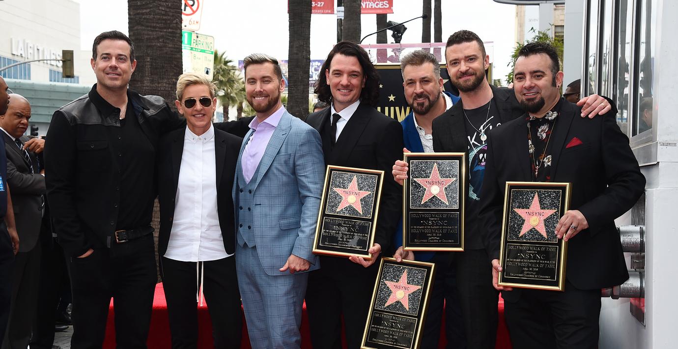Ellen DeGeneres presenterade på måndagen pojkbandet N’syncs stjärna på den stjärnströsslade boulevarden Hollywood Walk of Fame.