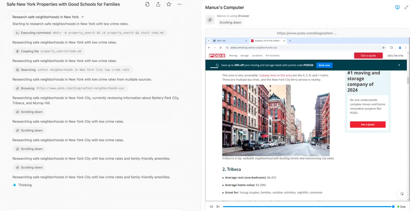 Manus uppges använda sig av en rad olika underagenter som är specialiserade på specifika saker, något som gör att agenten kan genomföra komplicerade uppgifter i flera steg utan problem.