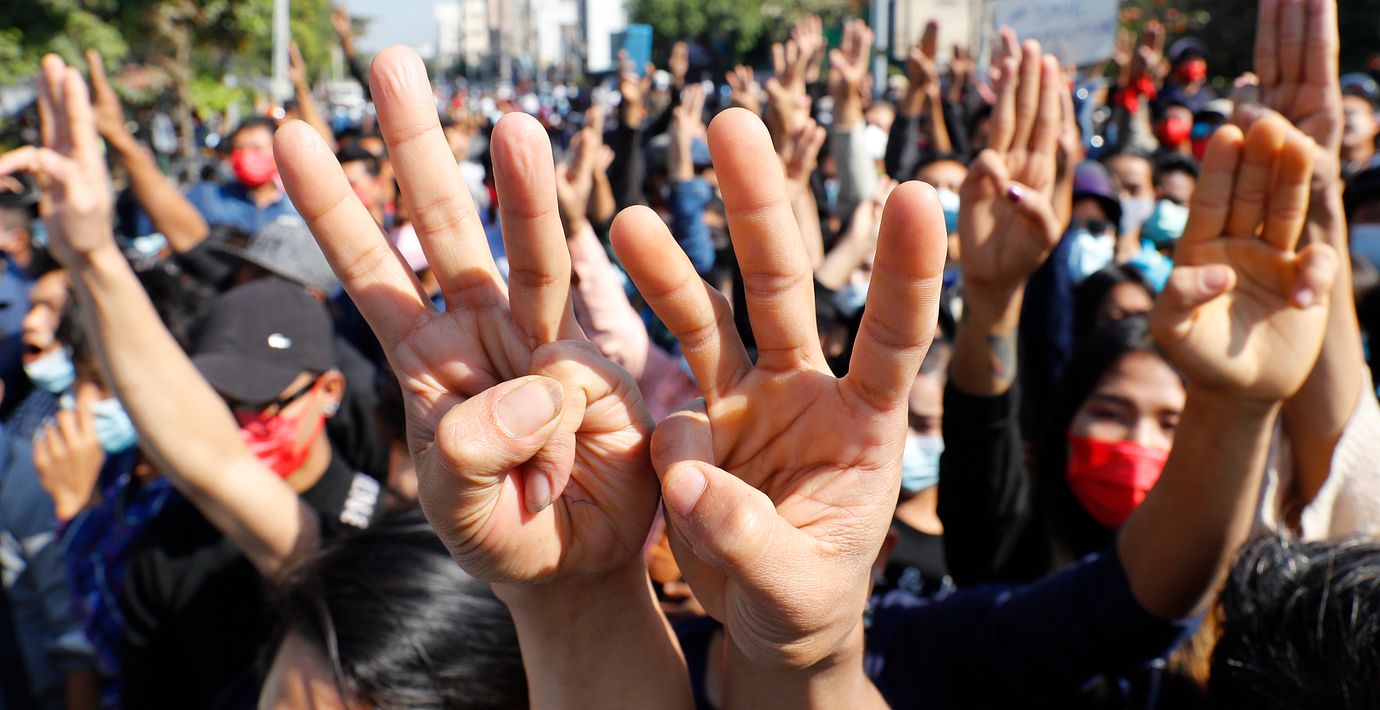 – Stoppa militärdiktaturen, skanderar demonstranter i Naypyidaw.