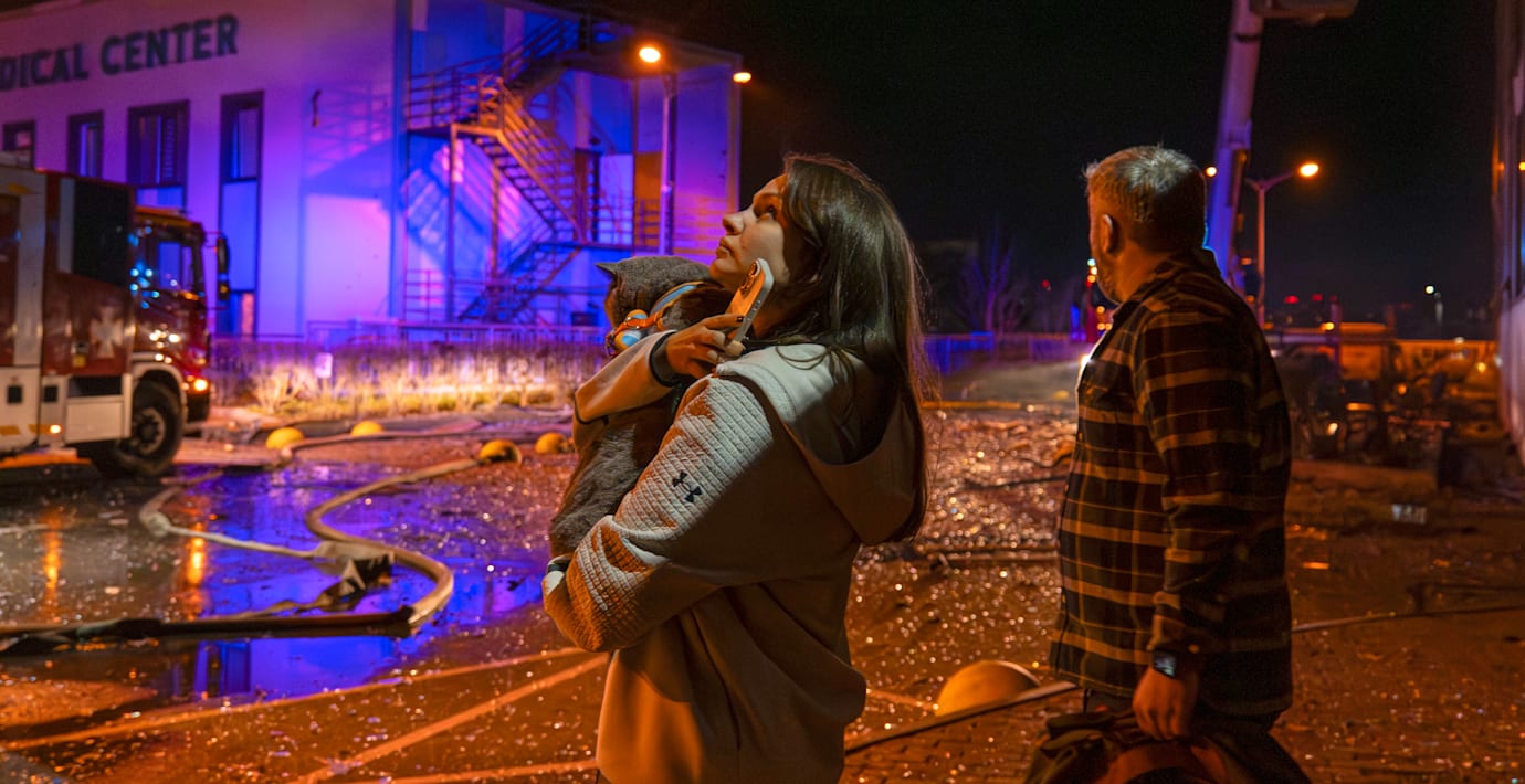 Det ukrainska luftförsvaret har utlyst en robotvarning över hela landet och energiinfrastruktur uppges ha skadats.