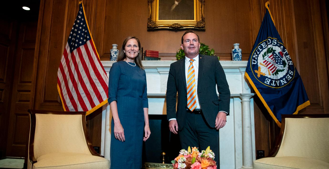 Amy Coney Barrett och Mike Lee (Al Drago / TT NYHETSBYRÅN)