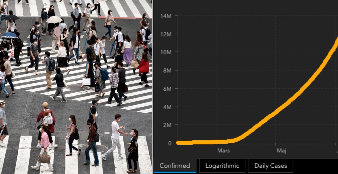 Totalt har nu över 12 miljoner människor i världen bekräftats smittade av coronaviruset.