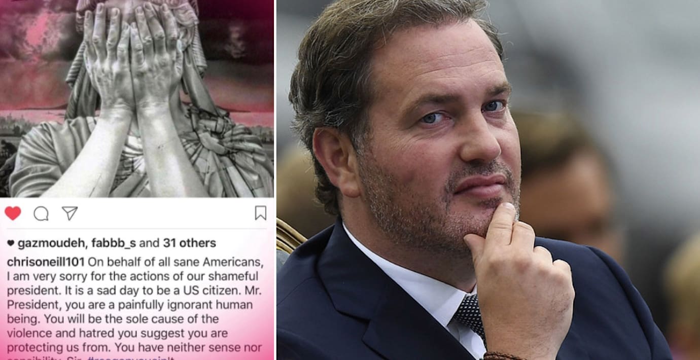 ”Å alla sunda amerikaners vägnar är jag väldigt ledsen för vår skamliga presidents handlingar. I dag är det sorgligt att vara amerikansk medborgare. Herr president, du är en smärtsamt okunnig människa”, står det på ett Instagramkonto som sägs tillhöra prinsessan Madeleines make Chris O’Neill. Det är hans vän Giancarlo Giammetti som har repostat inlägget från O’Neills privata konto med kommentaren ”bra sagt”, skriver Aftonbladet.
