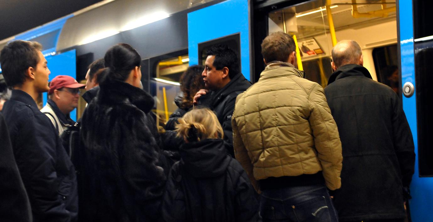 Det var inte många munskydd som sågs till i kollektivtrafiken i Stockholm i början av rusningstiden på onsdagseftermiddagen, enligt DN.