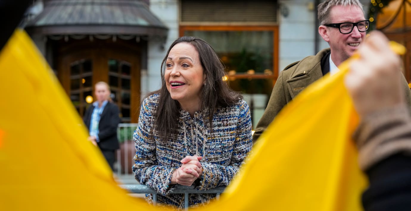 Machado gjorde sitt första offentliga framträdande när hon landade i Oslo under natten mot torsdagen.