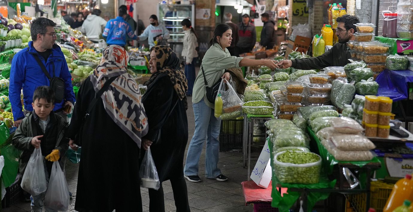Människor handlar i Teheran, 6 april 2026. (Francisco Seco /AP/TT)