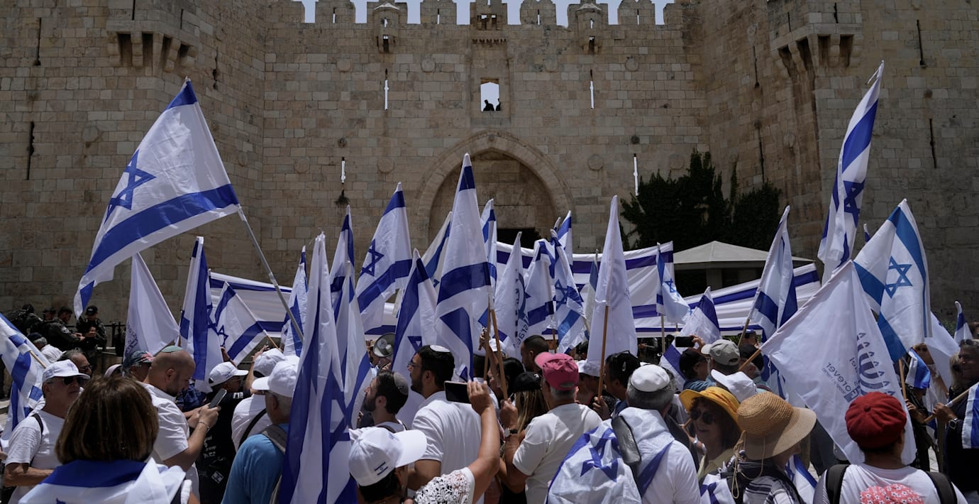 Oroligt vid stor flaggmarsch genom Jerusalem