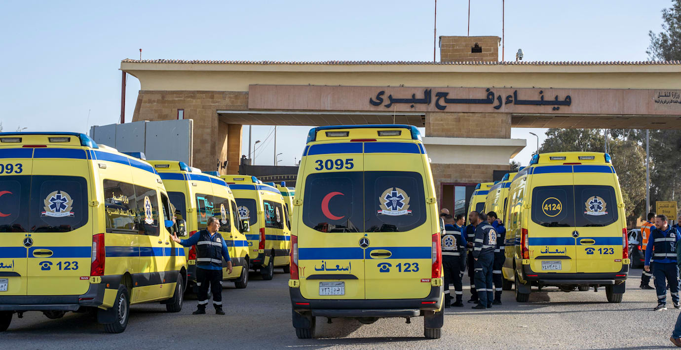Gränsövergången mellan Gaza och Egypten i Rafah väntas öppnas för första gången på två år på söndagen. I Al Jazeeras livebilder från platsen syns långa rader av ambulanser stå uppställda vid gränsen, efter dem följer lastbil efter lastbil med nödhjälp.