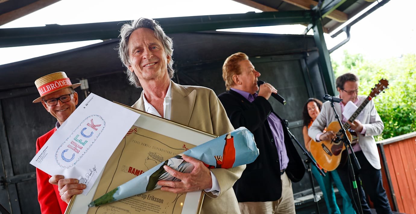 Thomas ”Orup” Eriksson tilldelas Povel Ramels Karamelodiktstipendium.