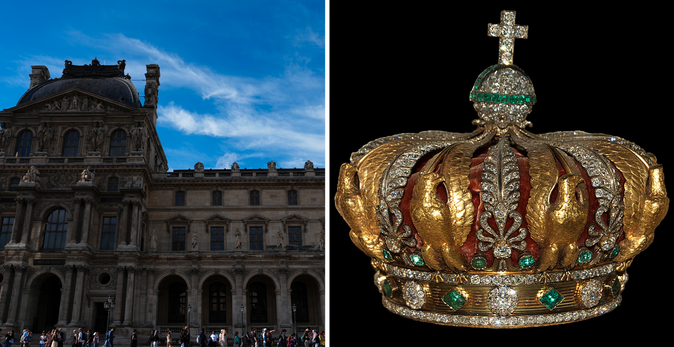 Most of the French Crown Jewels were sold by the Third Republic in 1885, including the Crown of Napoleon III. However, the Crown of Empress Eugénie was returned to the former empress, who bequeathed it to Princess Marie-Clotilde Bonaparte. It subsequently came up for auction in 1988, after which it was donated by Roberto Polo to the Louvre museum in Paris, where it is currently on display.