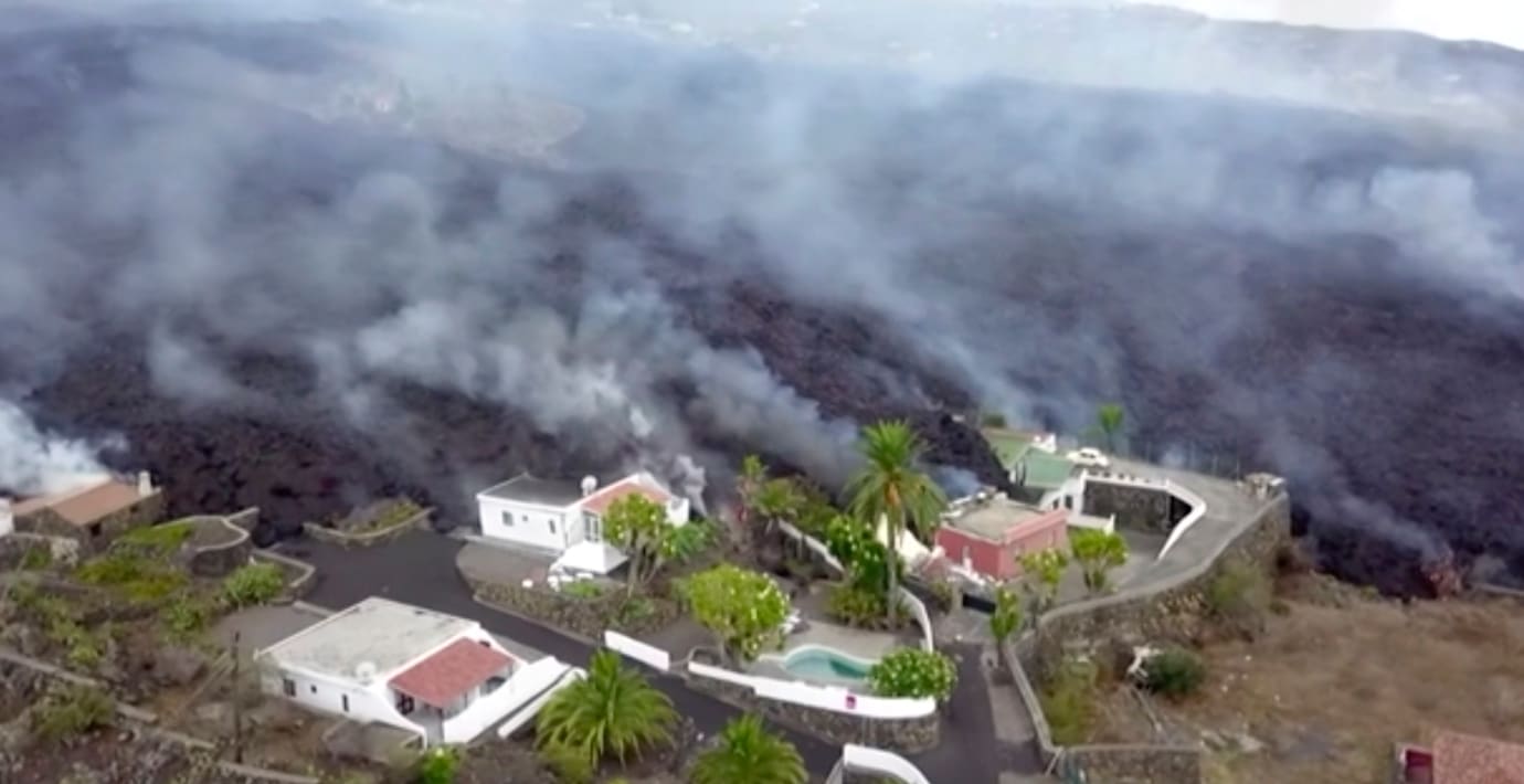 Över 100 hem förstörda när lavan strömmar mot havet