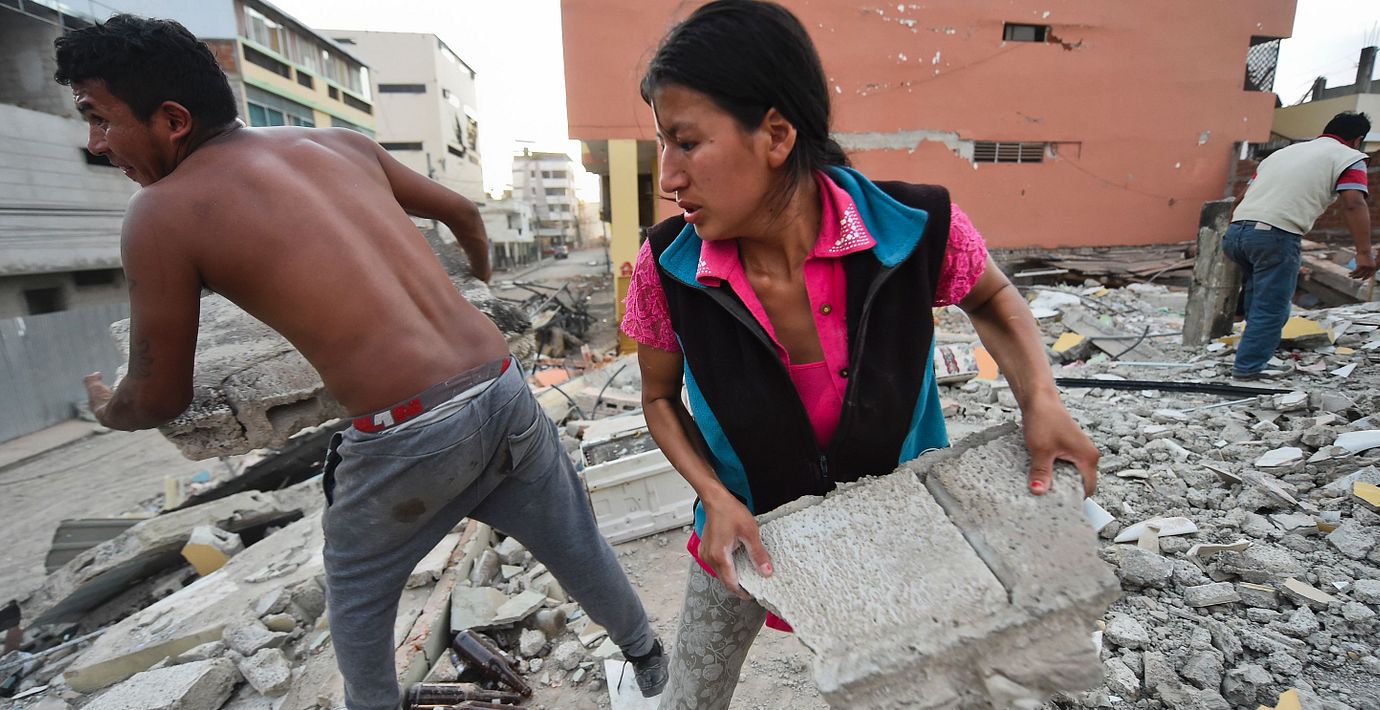 Desperationen bland dem som söker efter sina anhöriga i de förstörda byggnaderna efter jordskalvet i Ecuador är stor, rapporterar AFP. I staden Manta vid kusten slet en grupp människor bort stora cementblock och förvriden metall med sina bara händer.